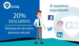Si es cliente nuevo e interactúa con cualquiera de nuestras redes sociales, es acreedor del 20% de descuento en la declaración de renta persona natural 2020. Para saber si debe declarar este año y cuál